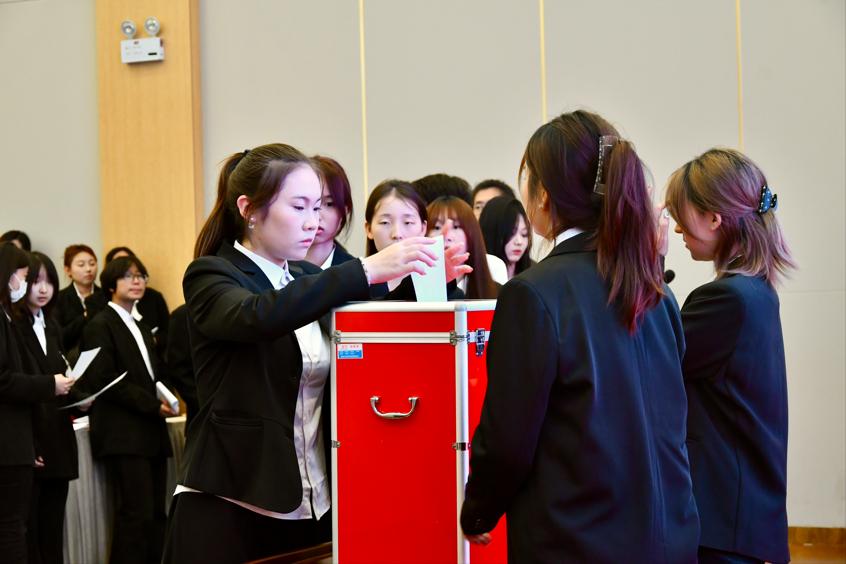 在正式会议第二次全体会议上,投票选举文化传媒与艺术设计学院第六届学生会主席团成员,分别为翟婷婷、任静、侯艳,并根据票数情况确定翟婷婷为本学期执行主席。