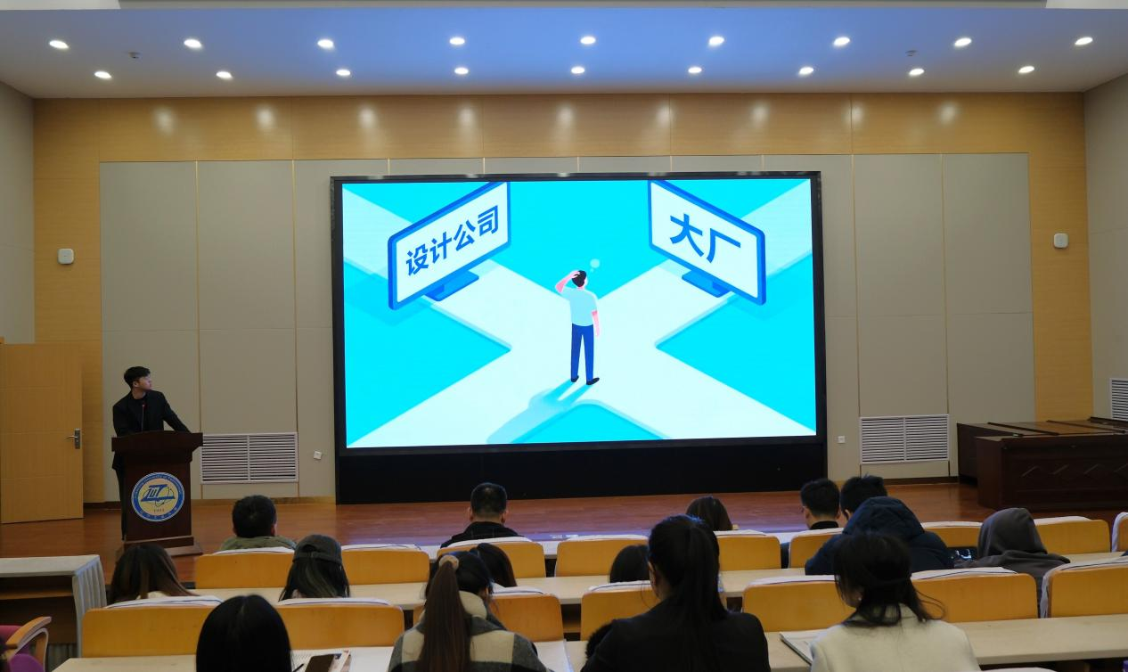 为充分发挥优秀校友的榜样引领作用,扎实推进大学生学业规划与就业指导工作,助力传设学子成长成才,10月20日上午,文化传媒与艺术设计学院“校友开讲啦”系列主题报告会第九讲在我校第五教学楼党员教育培训中心倾情开讲。讲座由传媒设计学院学生党支部书记、2026届毕业生辅导员刘润周主持。学院领导、全体辅导员和各年级150余名学生聆听了本次报告会。