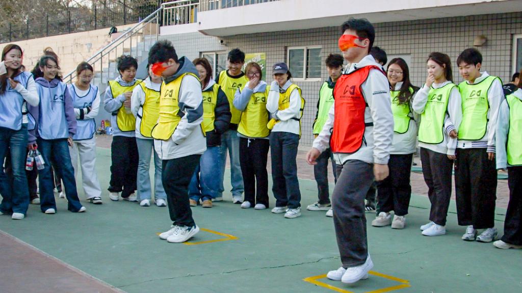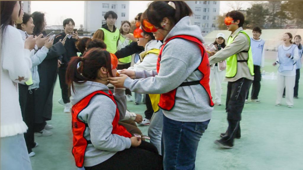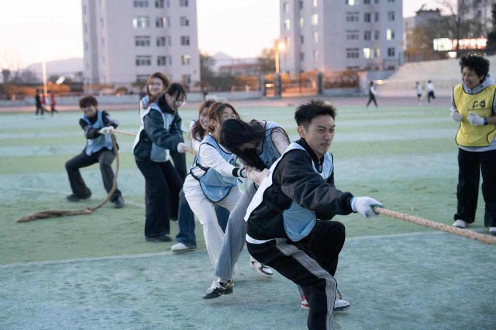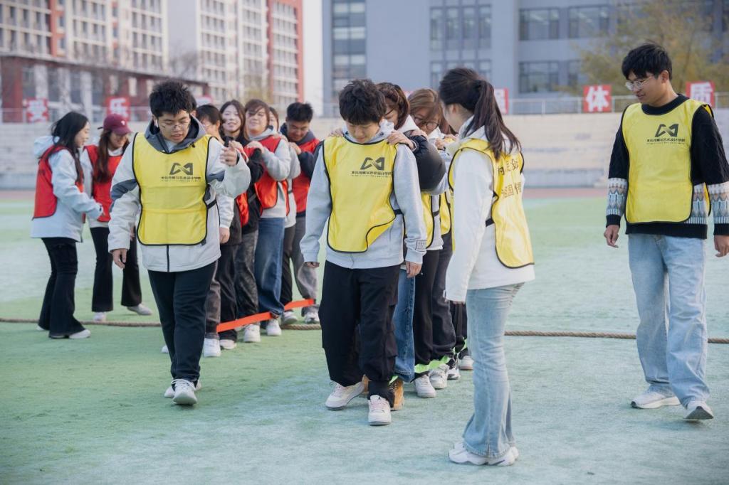 本次活动设置了《我们是最棒的团队》《珠行万里》《巨人脚步》《蒙眼踏步走》《蒙眼吃水果》《拔河》等团队协作项目。在《我们是最棒的团队》中,同学们口号响亮、动作整齐,展现出昂扬向上的集体精神;《珠行万里》考验了团队的默契与配合,大家全神贯注、精准传递,确保小球顺利前行;《巨人脚步》项目中,队员们步调一致、节奏统一,在整齐的口号中协力向前;《蒙眼踏步走》和《蒙眼吃水果》则增强了彼此间的信任与沟通,大家在黑暗中协作摸索,笑声不断;最后的《拔河》比赛将活动推向高潮,双方全力以赴、斗志昂扬,展现出顽强拼搏的团队力量。