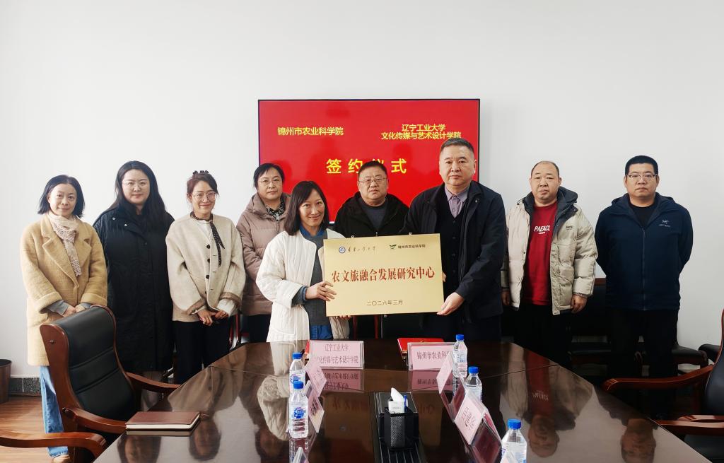 锦州市农业科学院院长许远从农业技术推广、农业产业化等方面介绍了农科院的科研优势。他表示,农科院在农业前端技术领域积累了丰富经验,此次与高校合作,将实现“农业+文化+旅游”的全产业链协同创新,期待双方在品牌建设、消费场景打造等方面取得实质性突破。随后,双方共同为“农文旅融合发展研究中心”揭牌,并签署了校地合作框架协议。